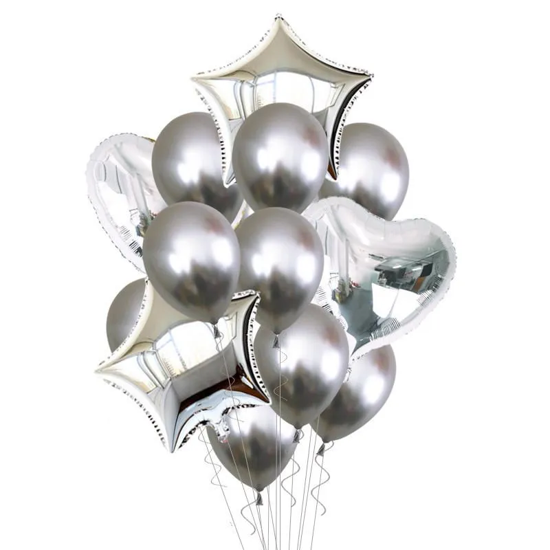 14 Pcs Latex Balloon Bouquet Set including Star & Heart Helium Foil Balloons for Party Decoration