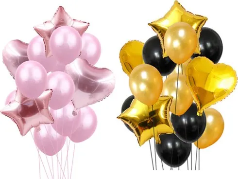 Binfen Balloon Set of 14 Pcs 2 Pcs 18 inch Star Balloons 2 Pcs 18 inch Heart Balloons 10 Pcs 12 inch Latex Balloons included Colors: Black & Gold / Silver / Red / Pink / Rose Gold / Pas... Read More