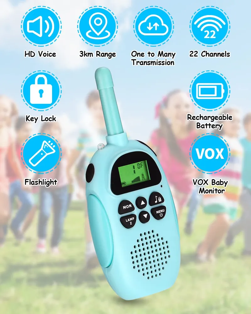 2 Pcs Walkies Talkies for Kids - Rechargeable Kids Walkie-Talkie 22 Channels with Backlight Flashlight VOX Function