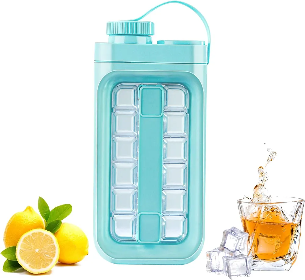 2 in 1 Portable Ice Mold Bottle With Lid The Sanitary Ice Makers - Ice Cube Trays for Freezer - Makes 17 Ice Cubes for Whiskey / Hockey / Champagne /