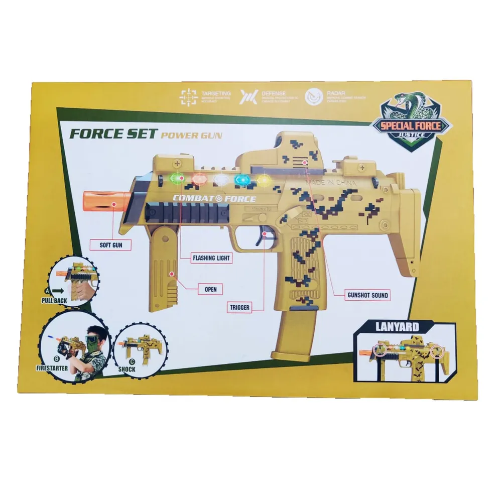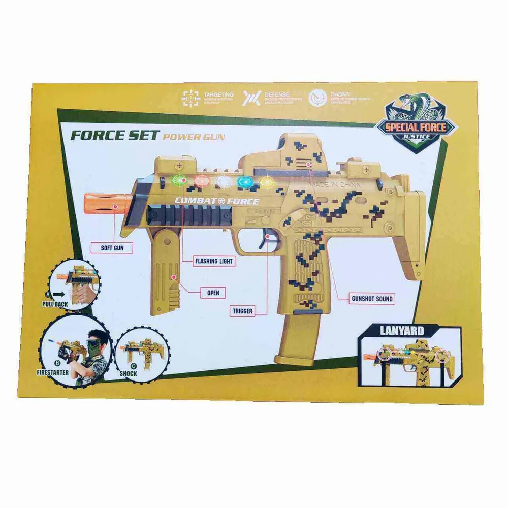 2 in 1 Force Power Gun for Kids Soft Dart Shooting & Gun Vibrate with Sound & Light Effects Nerf Gun