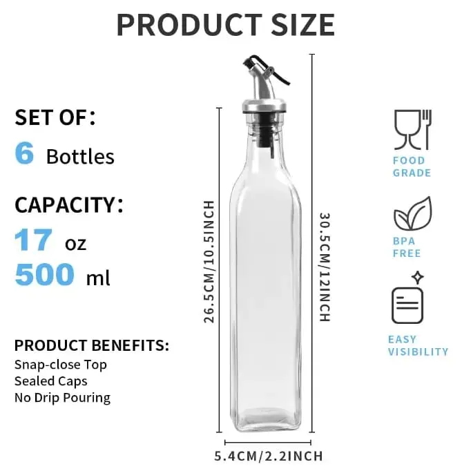 Oil, Vinegar Glass bottle dispenser Capacity: 500ml Non-drip spout, ensuring clean and tidy handling Newly structured pump chamber allows clean and smooth operation ... Read More