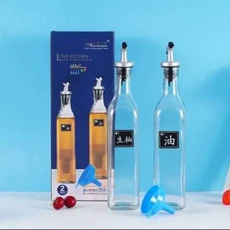 2 Set of Glass Oil & Vinegar Bottle Dispensers - 500ml