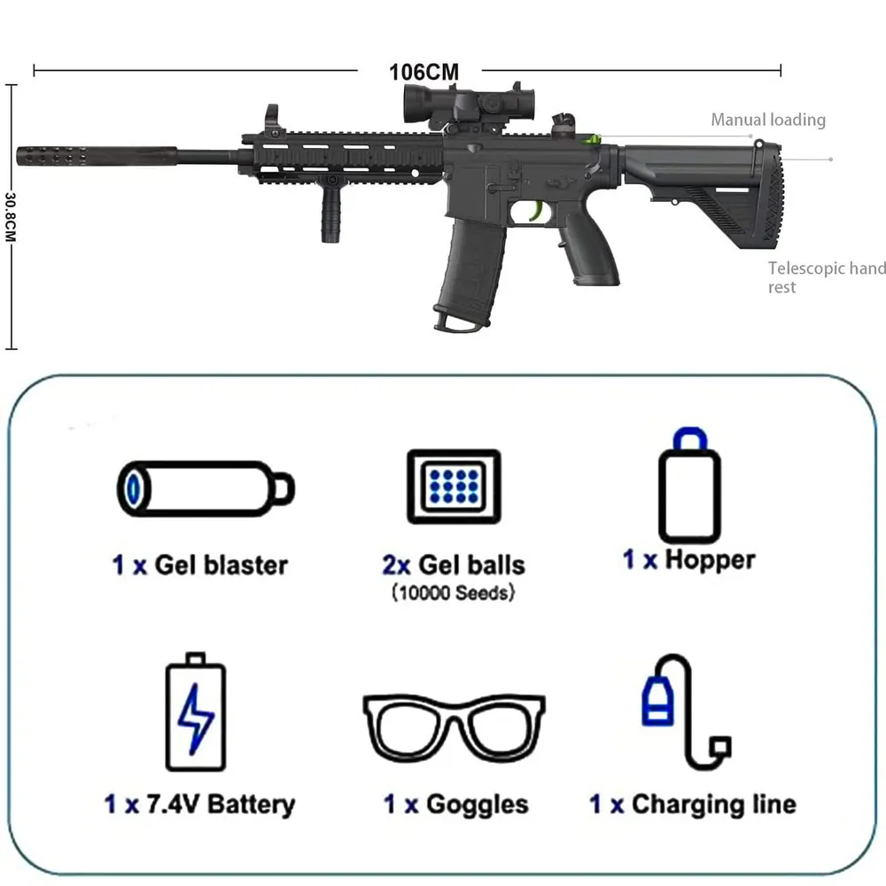 M416 Assault Rifle Toy Gun All parents want to create the safest and healthiest environment for their beloved children, including toys. This Gel Ball Blaster is made from safe grade ABS M... Read More