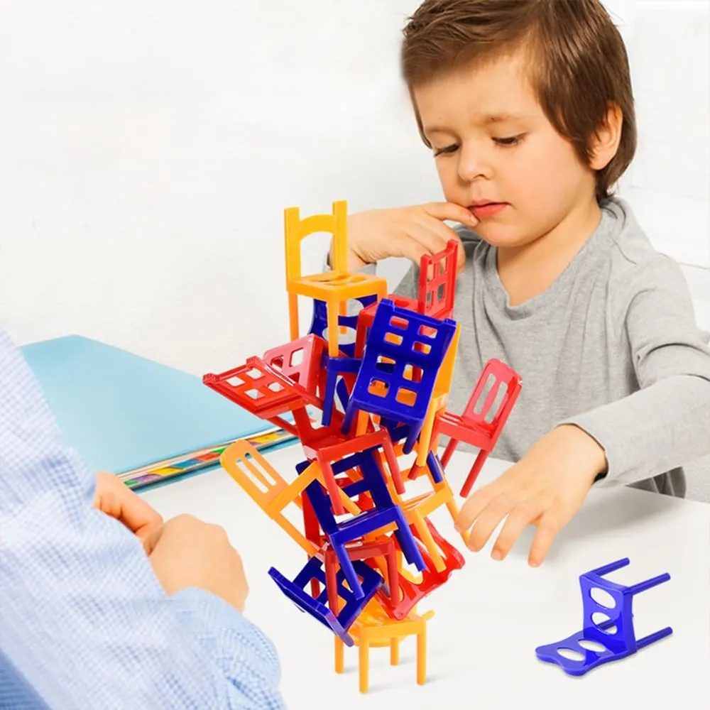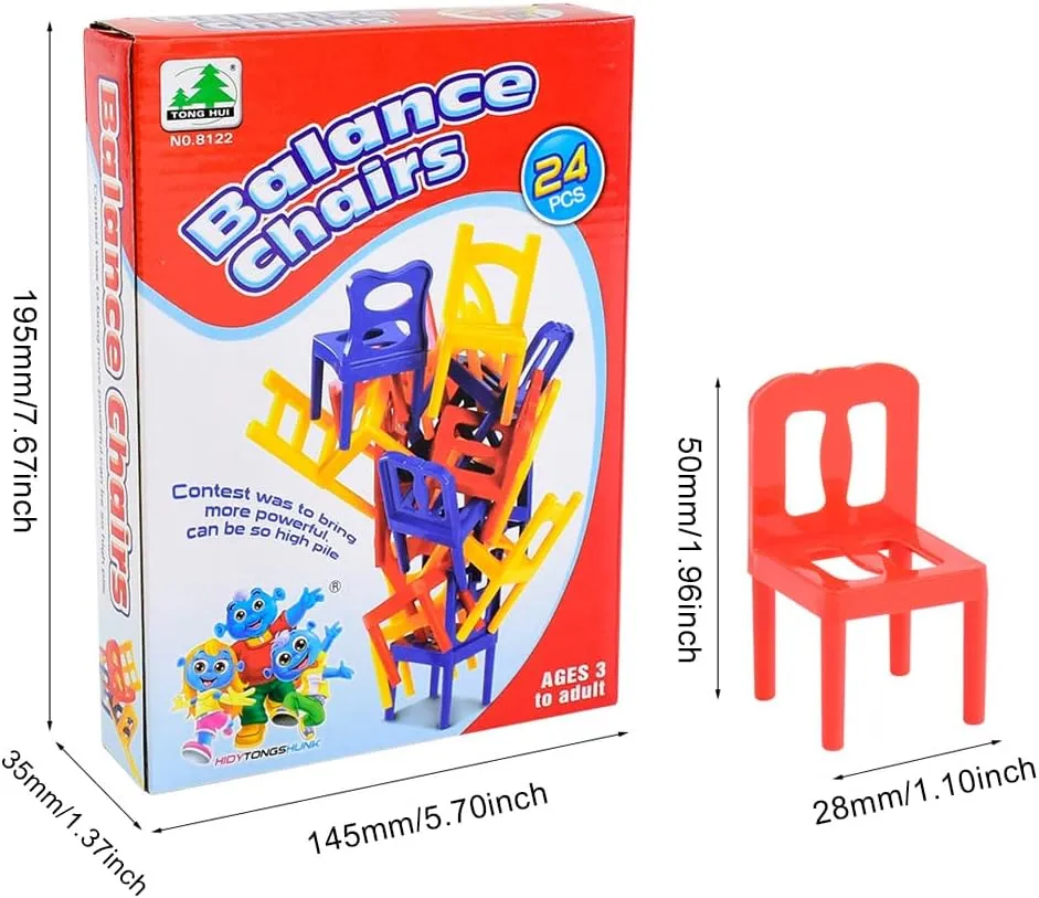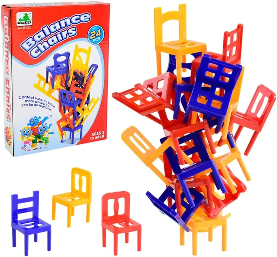 24 Pcs Balance Chairs Game - Colorful Stacking Chair Set DIY Balance Chair Stool Family Board Balancing Games Chairs & Ladders Family Game Stacking Mo