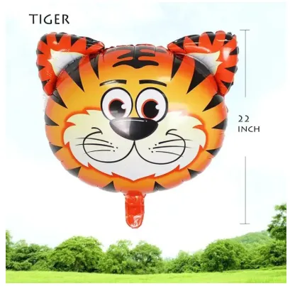 Safari Animal Foil Double Sided Animals to choose: Lion, Giraffe, Tiger, Monkey, Cow & Zebra Size: 25" Inches each High quality Can be filled with Normal Air or Helium