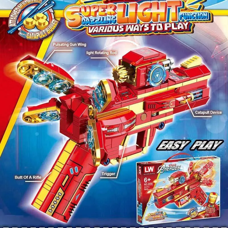 317+ Pcs Iron Man Gun with Super Dazzling Light - Avengers Super Heroes LW Building Blocks 2056