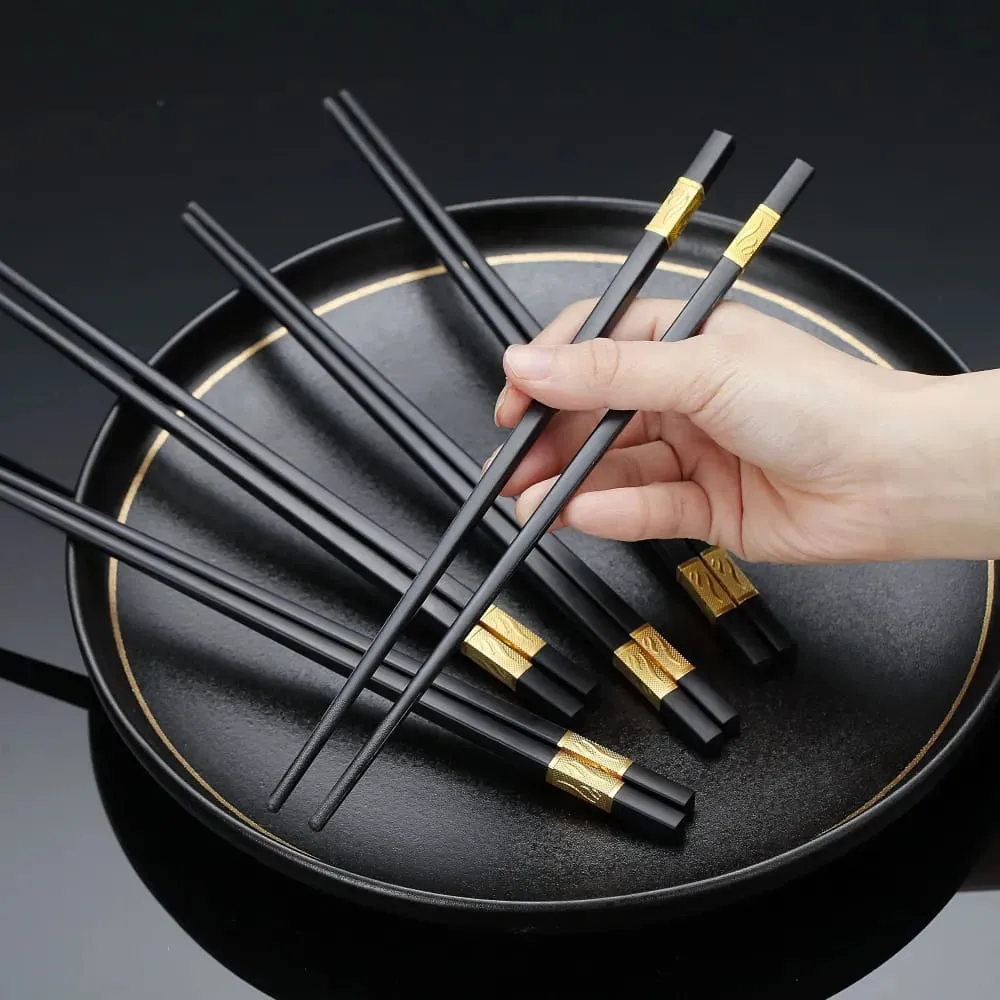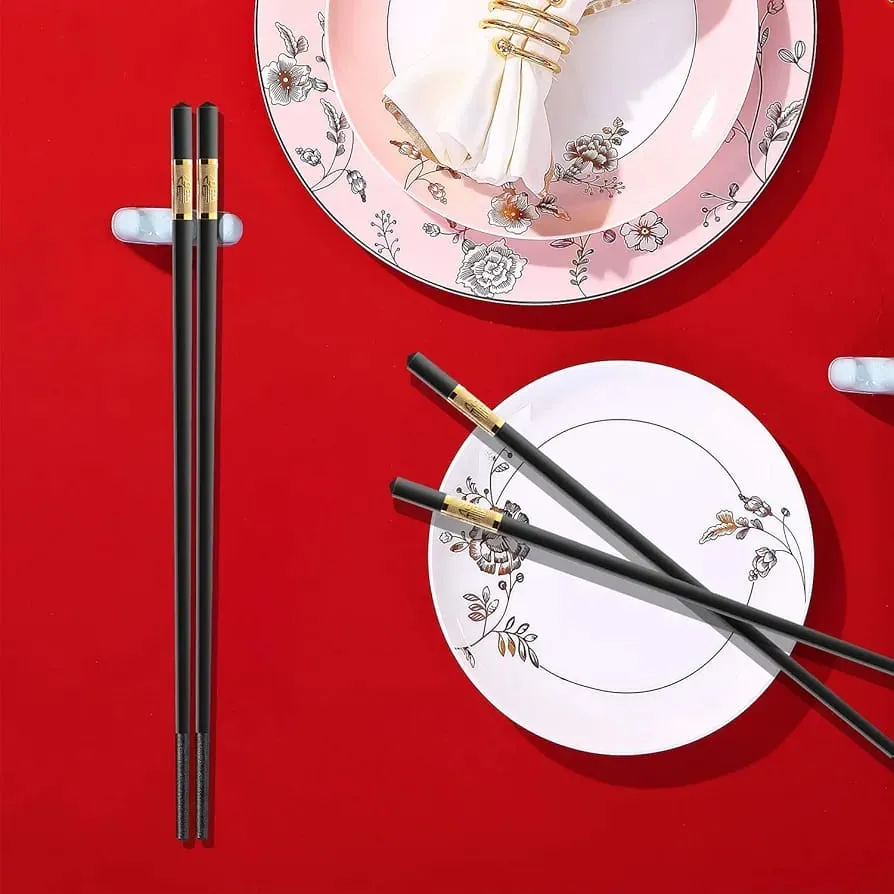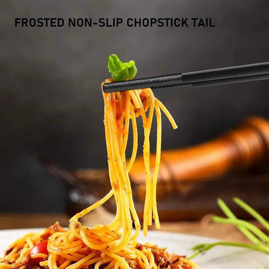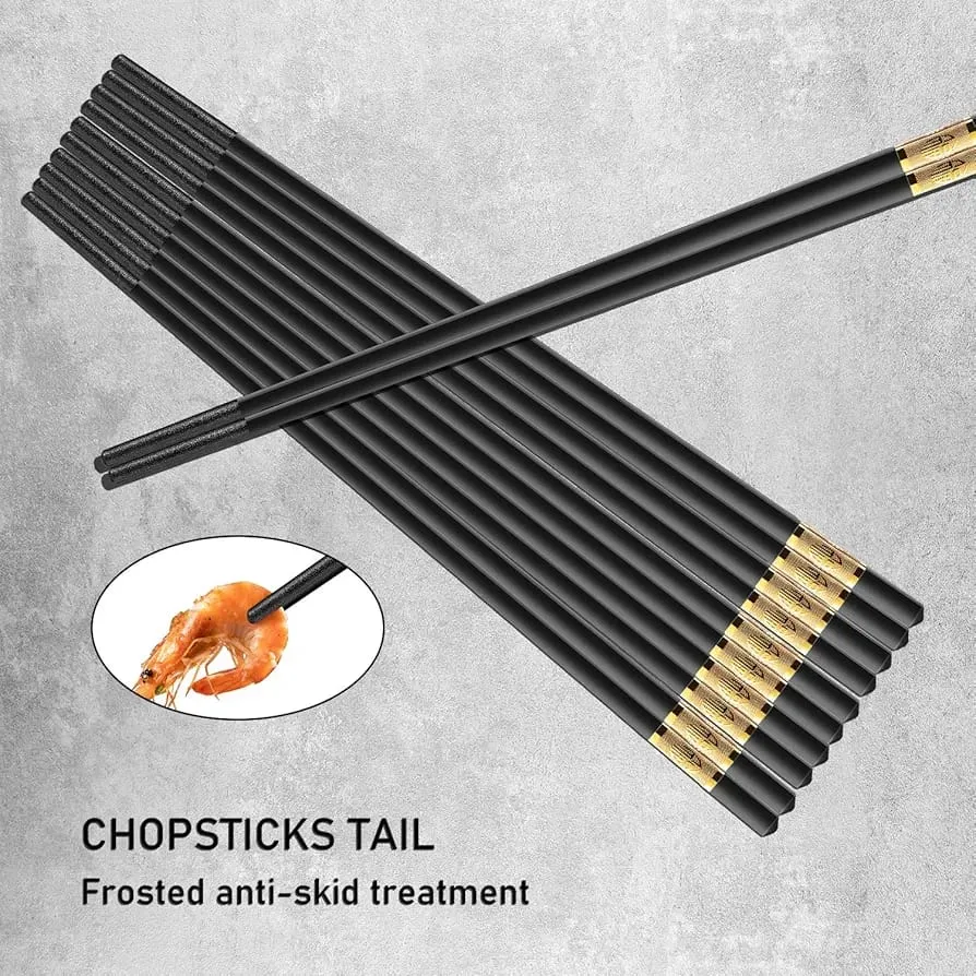 5 Pairs Alloy Chopsticks - Reusable Fiberglass Alloy Non Slip Japanese Chinese Korean Chop Sticks Pack