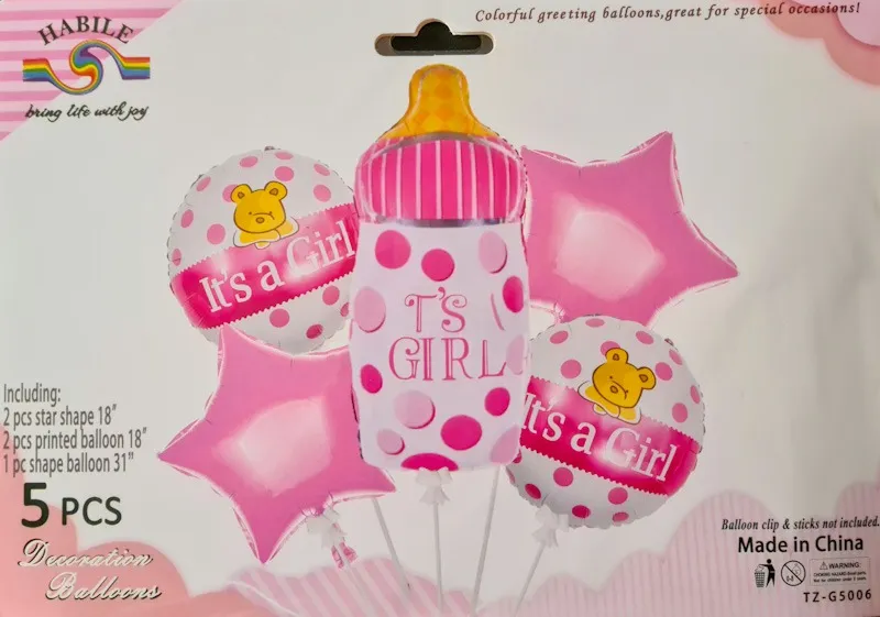 5 Pcs It's a Girl Foil Set Color Theme: Pink 2 Pcs Star shape foil - 18" 2 Pcs printed foil balloon - 18" 1 Pc shape Balloon - 31" Can be filled with normal ... Read More