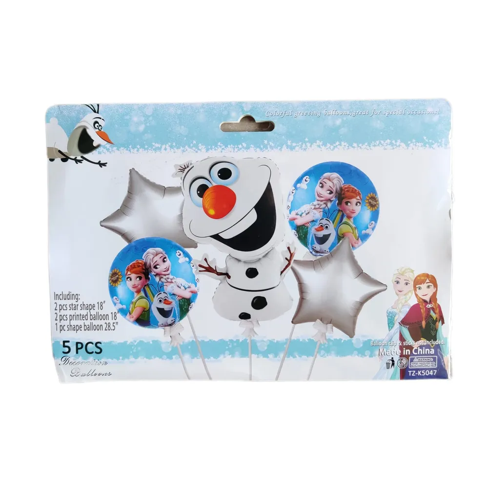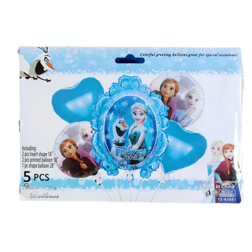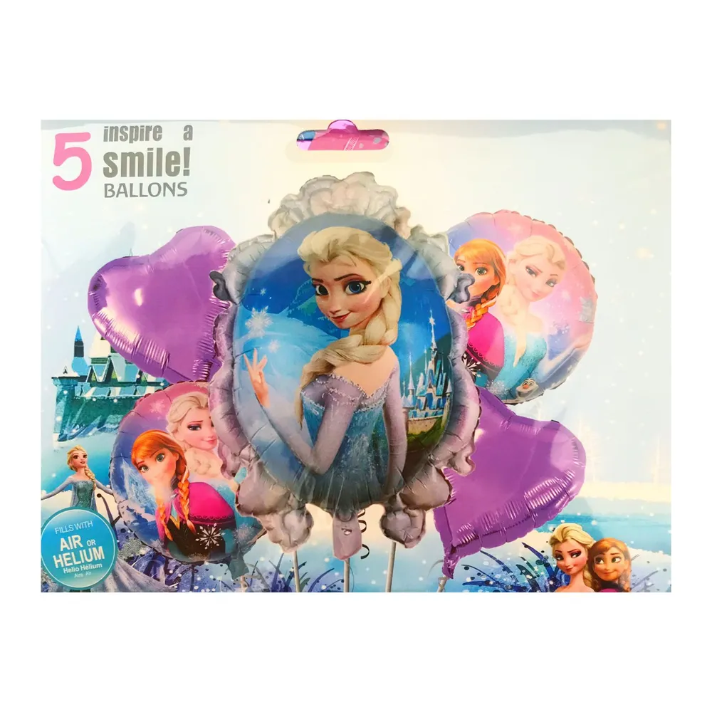 5 Pcs Frozen Fever Foil Balloon Pack - Themed Birthday Party Balloons for Kids - Party Decorations Frozen Doll Design