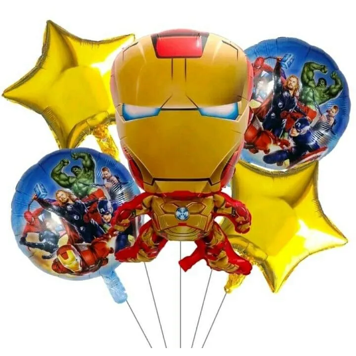 5 Pcs Iron Man Foil Balloon Pack - Themed Birthday Party Balloons for Kids - Party Decorations Ironman Design