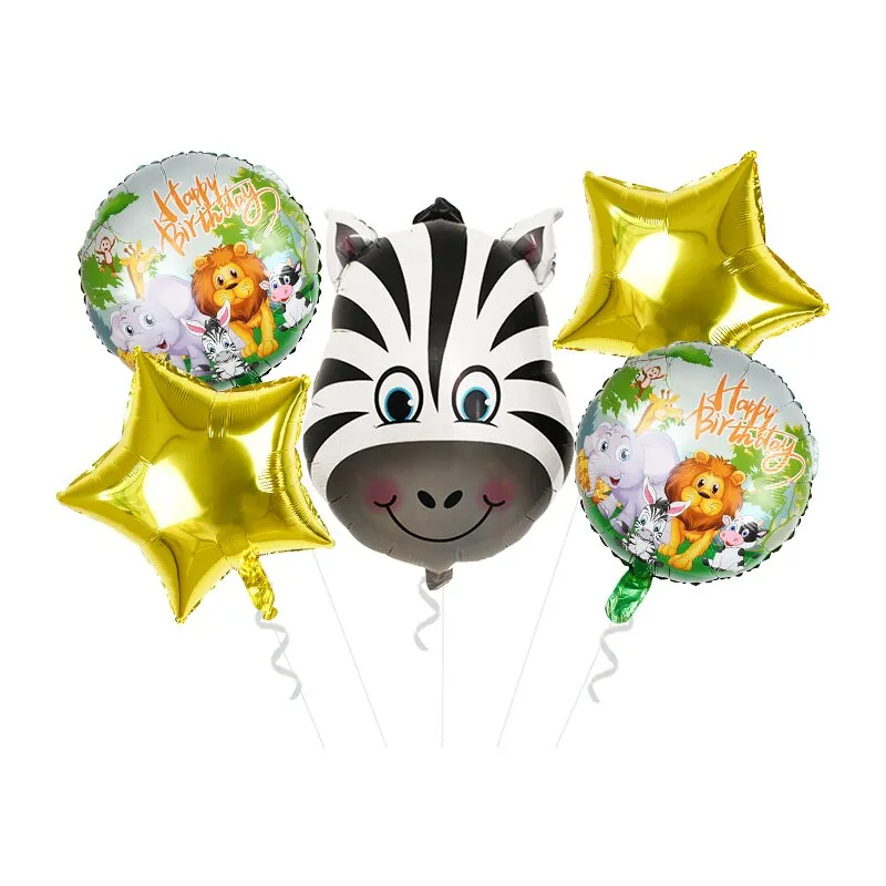 Safari Animal Theme Foil Set 5 Pcs Foils included Types: Lion, Tiger, Giraffe, Zebra Can be filled with Air of Helium Animal Shape Foil Balloon included 2 Gold Star Shape Balloons & 2... Read More
