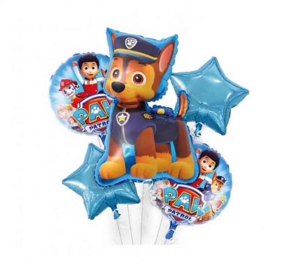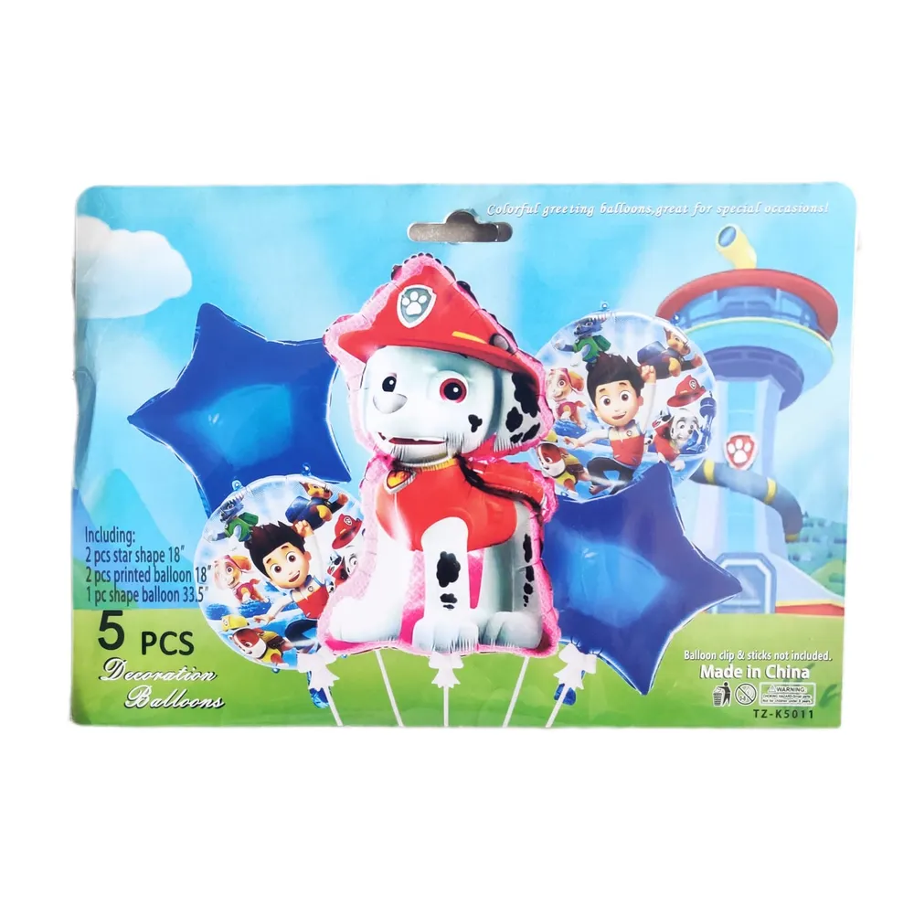 5 Pcs Paw Petrol Foil Balloon Pack - Themed Birthday Party Balloons for Kids - Party Decorations Pow Patrol Design