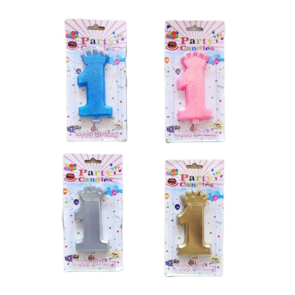 Big Number 1 Candle Candle with Needle Size: 6 Inches / 15 cm Candle Number size: 12cm Colors: Gold / Silver / Blue / Pink Number One Good Quality