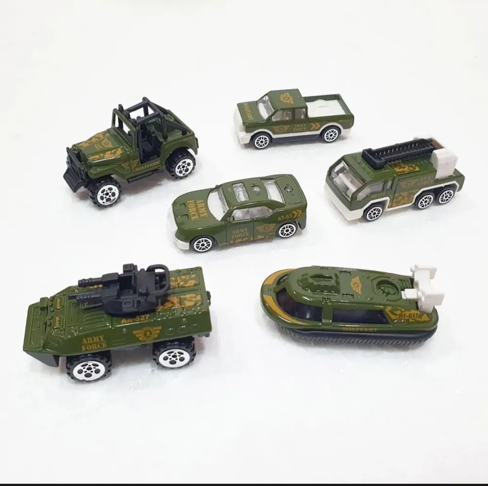 Action Team Military Vehicle Set 6 Vehicles included Material: Alloy & Plastic Car Size: 7cm x 3cm approx. 1:64 Scale Model Free Wheel Action Jeep, Cab, Fire Truck, Tank, Car, Boat ... Read More