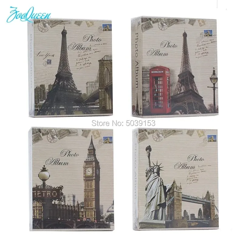 60 Pages Simple Vintage Building Travel Series Photo Album - Family Graduation Home Deco Kids' Children Birthday Desk Photos Picture Albums