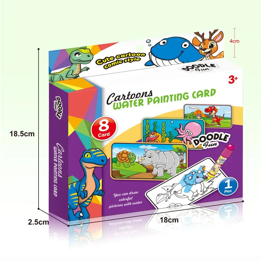 Cartoon Water Painting Card 8 Cards included with 1 Pen Theme: Dinosaur You can draw colorful pictures with water Doodle Fun Card size: 15cm x 8cm Reusable No ink, No mess Thick car... Read More