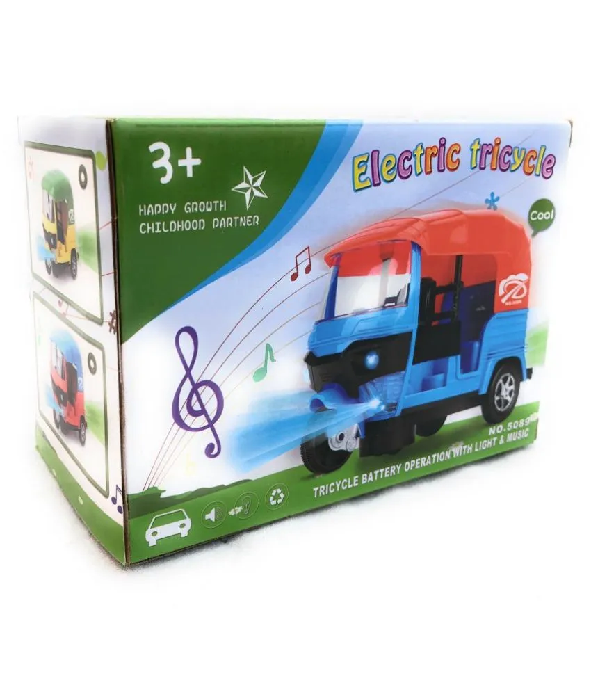 Electric Tricycle Auto Tuk Tuk Toy for Kids with Lights & Music Electric Three Wheeler with Bump & Go Action