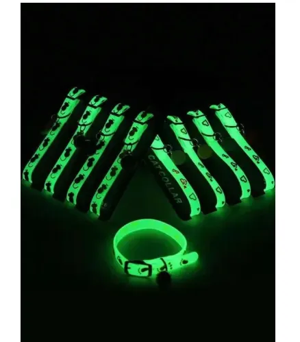 Glowing Cat Collar with Bells - Glow at Night Dog Cat Silicone Rubber Necklace Luminous Neck Ring