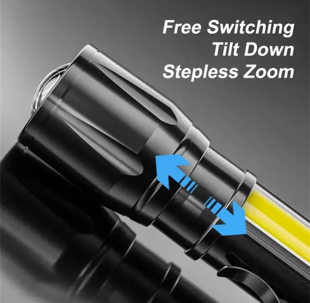 Mini Telescopic Zoom LED Flashlight - Technical Tech LED Flashlight with COB Light Mini Waterproof Portable LED Flashlight USB Rechargeable 3 Modes Li