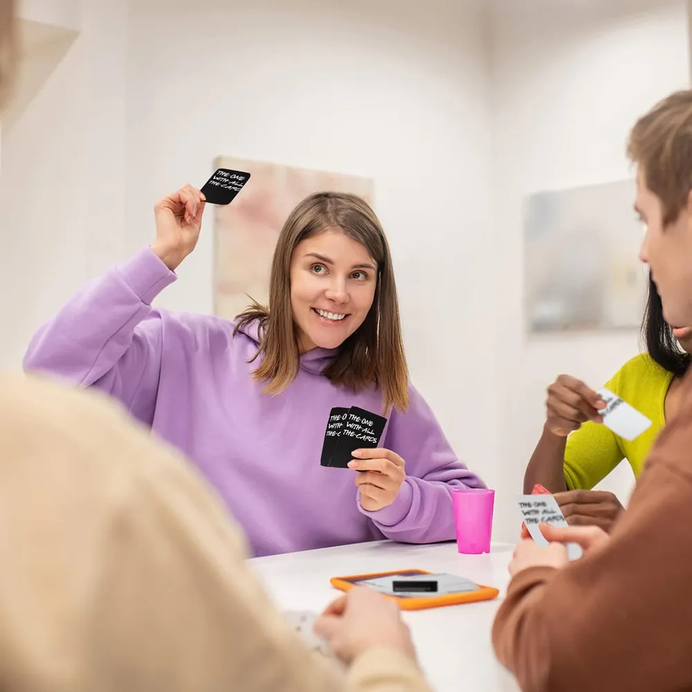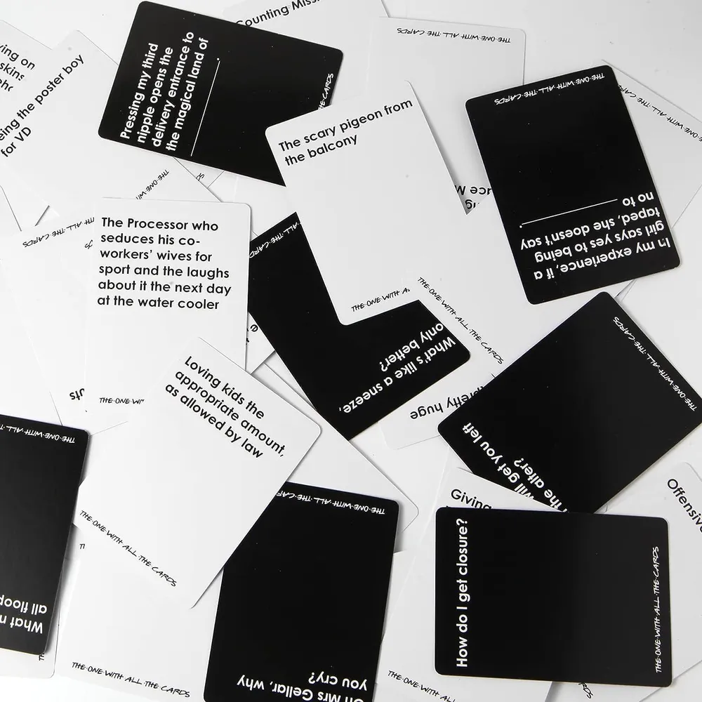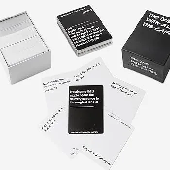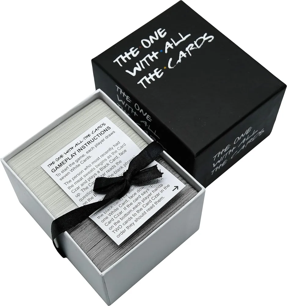 The One With All The Cards Friend TV Series Card Game Package includes 90 black cards and 144 white cards. Each round, one player asks a question from a Black Card, and others answers with th... Read More