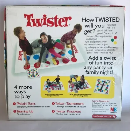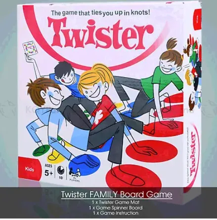 Twister Game Ages: 5 years and up Need 2 or more kids / adults Fun and family game Can play in kids or family parties Includes playmat, selector and instructions Can play indoor and out... Read More