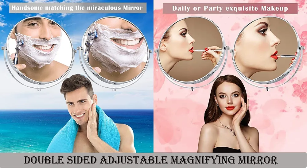 Cosmetic Mirror | Makeup Mirror Magnifying Mirror Makeup | Double Side Magnification | Tabletop Vanity Hand Mirrors Stand | 5X and 1X | for Bathroom/