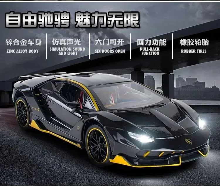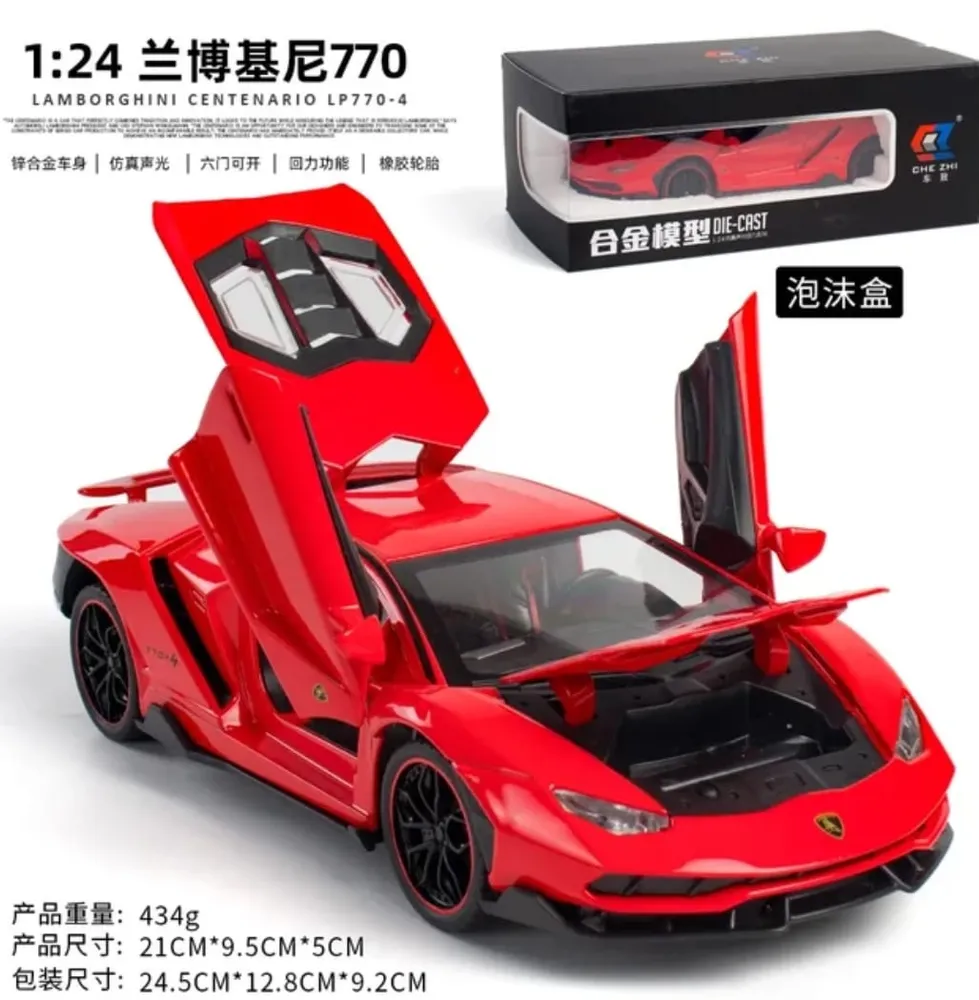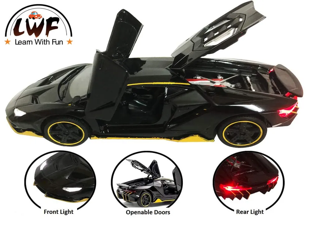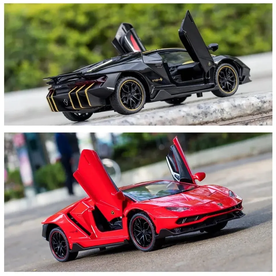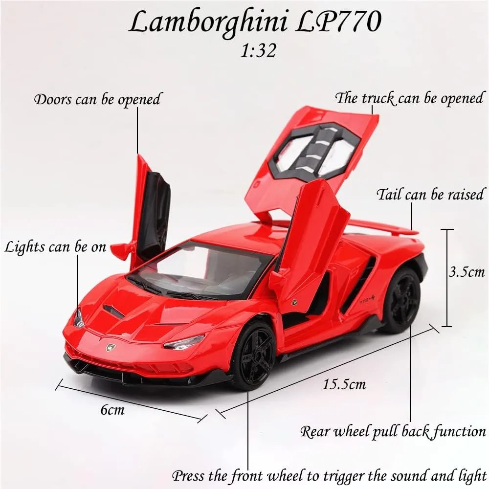 Die Cast Lamborghini LP770 Model Car (1:24 Scale) - Alloy Collectible Lambo Car Toy with Lights, Sounds & Pull Back Option