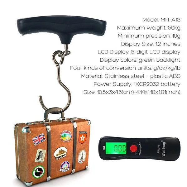 Digital LCD Electronic Luggage Scale with Hook String 50kg/10g (0.02lb - 110lb)