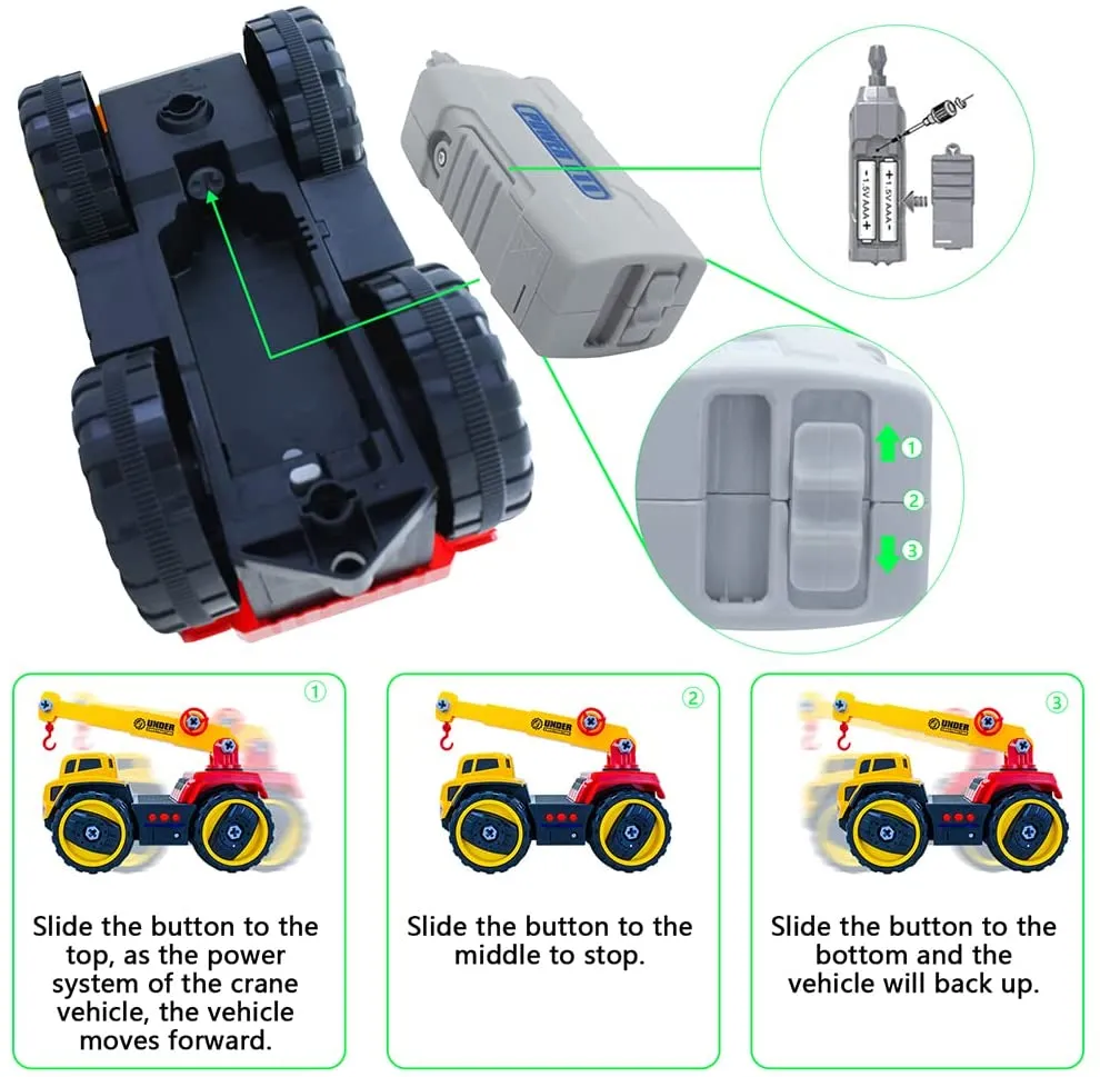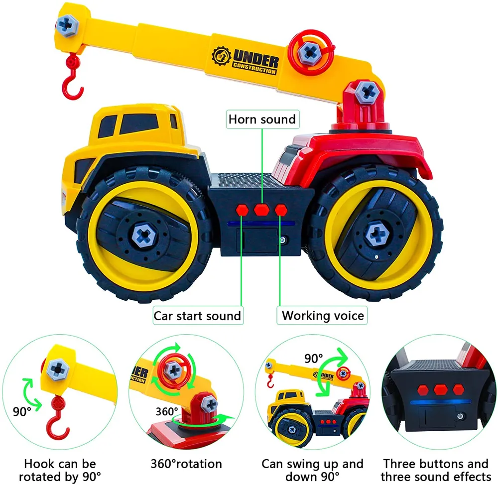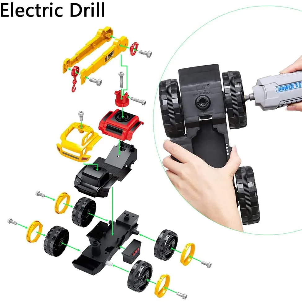 DIY Assembled Engineering Car Truck Crane - Take Apart Toys with Electric Drill Toy Truck for Kids - Multifunctional Truck with Lights & Sounds