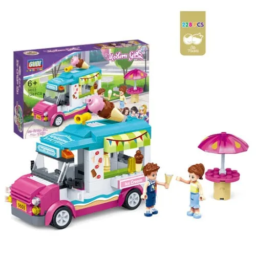 DIY Max's Ice Cream Van - 228 Pcs Amusement Park Series Building Blocks Bricks - Educational Gift Set for Girls - GUDI Modern Girls 9603