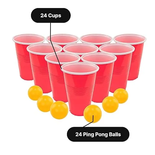 Complete Beer Pong Set: Includes 24 red cups and 24 balls for endless fun and excitement. Perfect Party Game: A must-have for lively gatherings, celebrations, and game nights. Ea... Read More