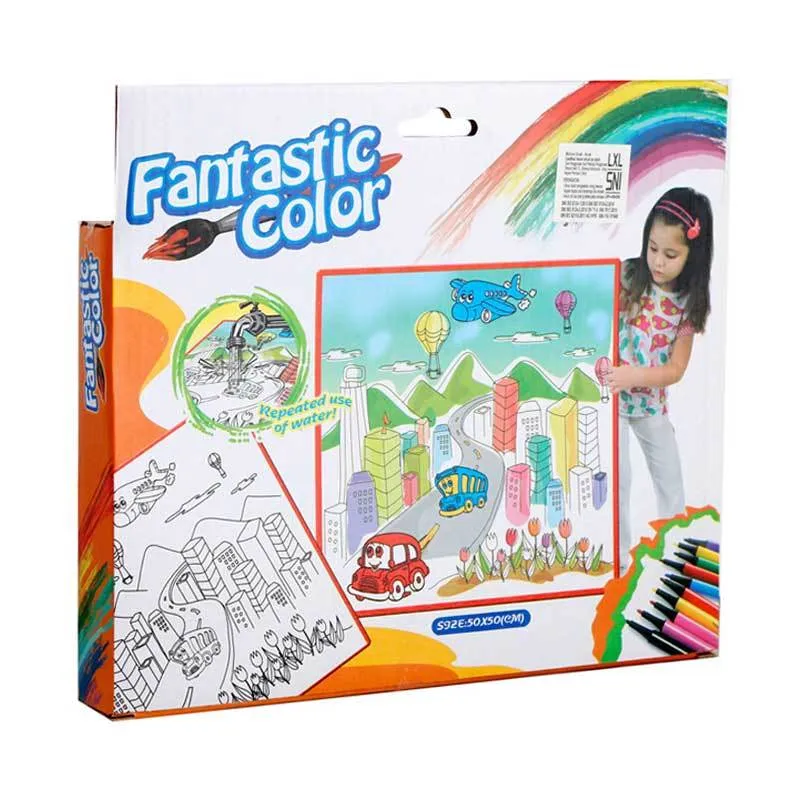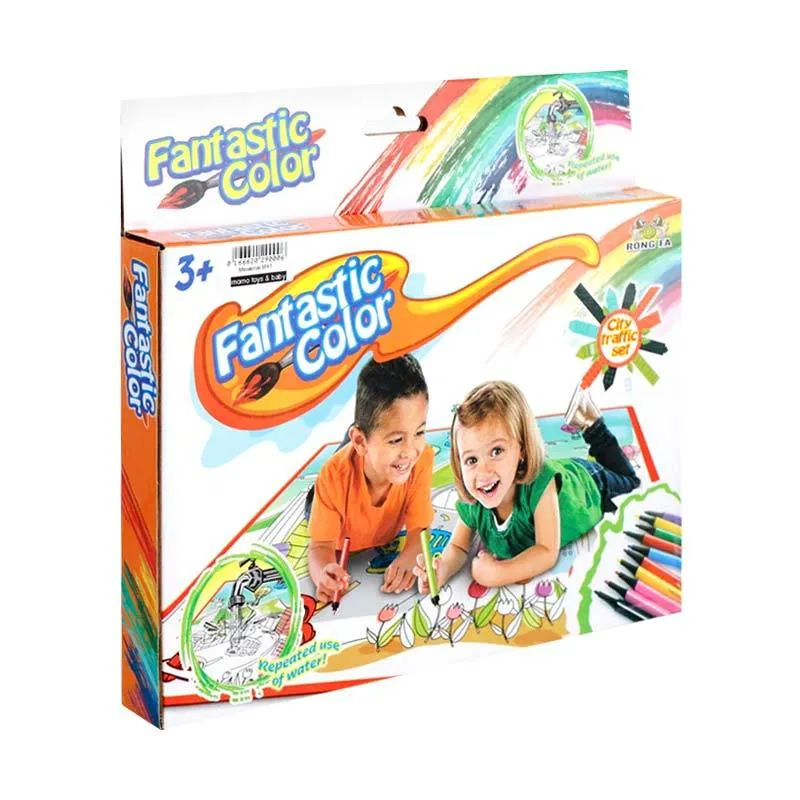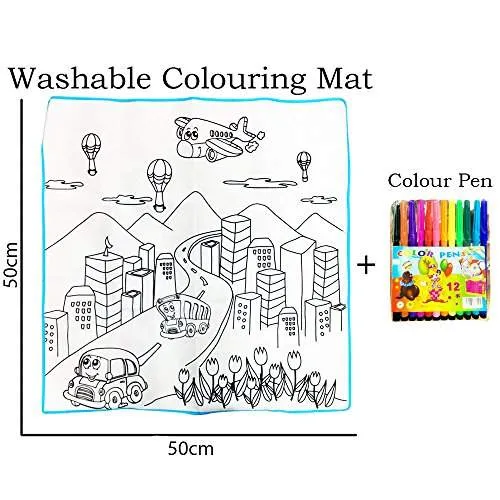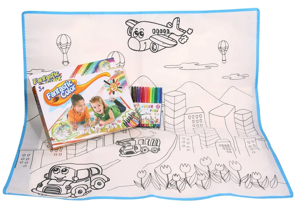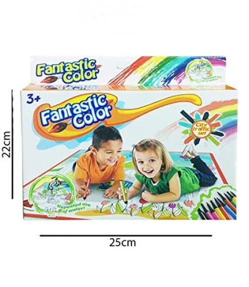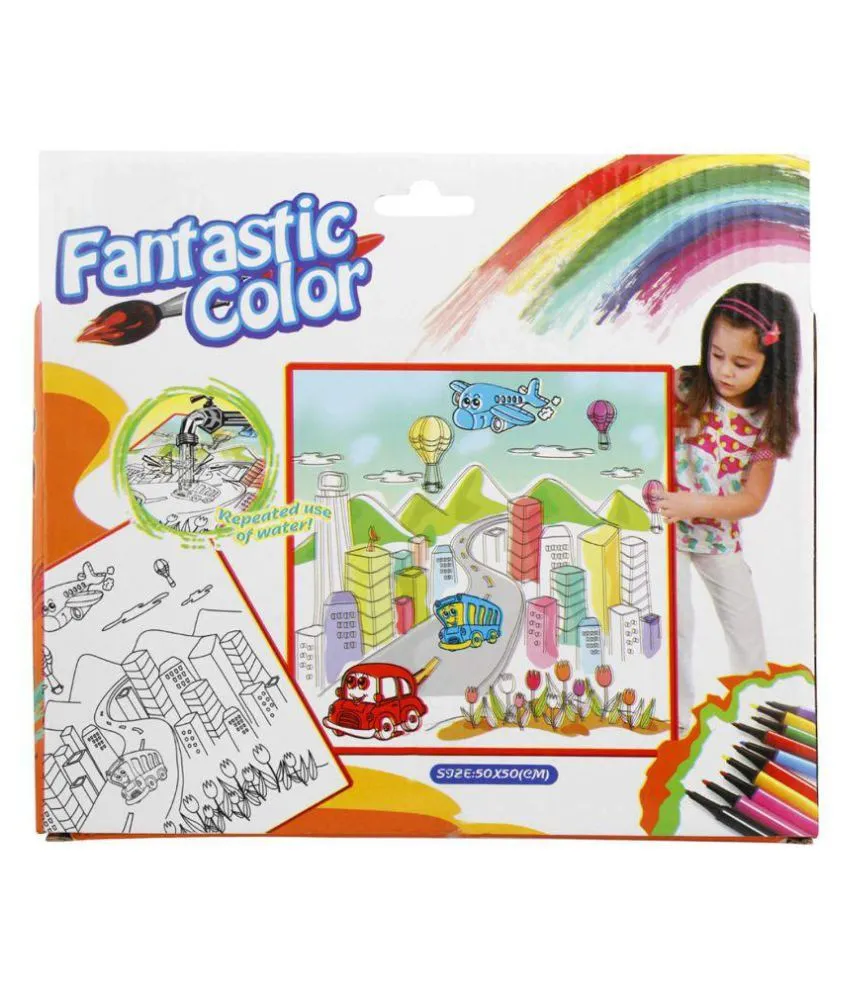 Fantastic Color Washable and Reusable Coloring Mat with City Traffic Set (80cm x 80cm)
