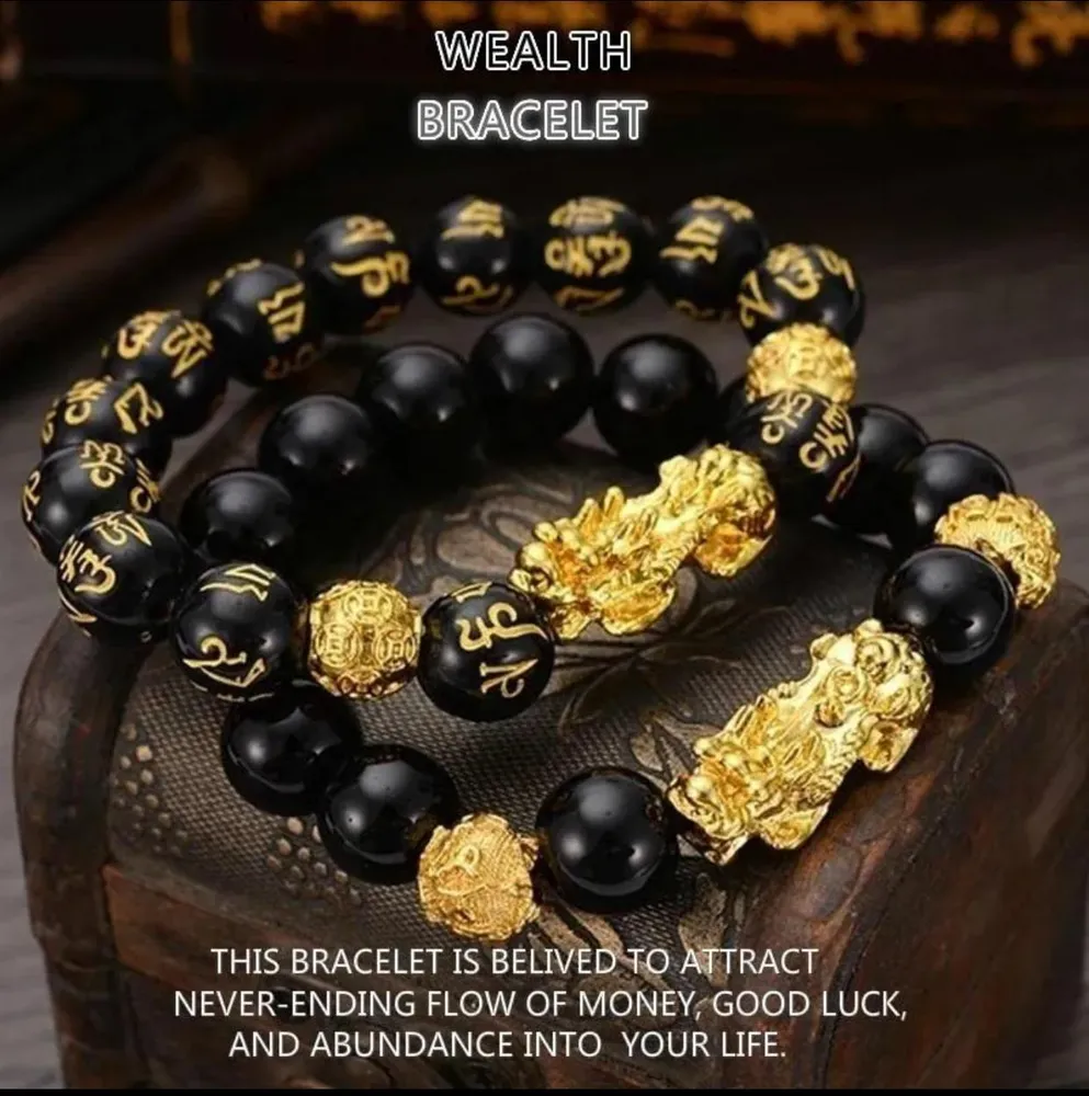 Feng Shui Resin Beads Black Wristband Gold Black Pixiu Bracelet Wealth Good Luck With Box