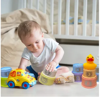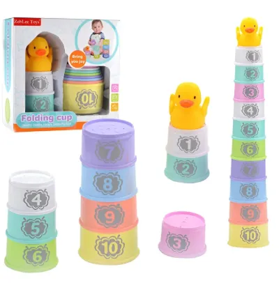 Folding & Stacking Cups with Duck for Kids (11 Pieces) - Baby Educational Nesting Toy