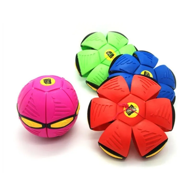 Kids Flying Flat Ball Disc - Catch Throw Frisbee Pop Up Outdoor UFO Design Transform Soft Plastic Flexible Suction Cup Shape Beach Garden Toy