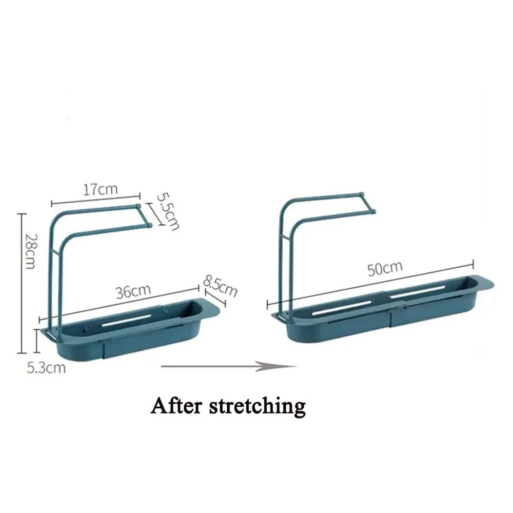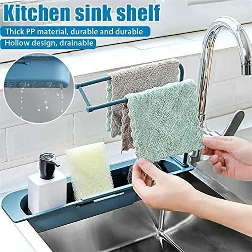 Plastic Kitchen Sink Self Draining Shelf Sink Sponge Holder - Telescopic Sink Shelf Adjustable Expandable Faucet Rack Dish Brushes Sponge Storage Shel