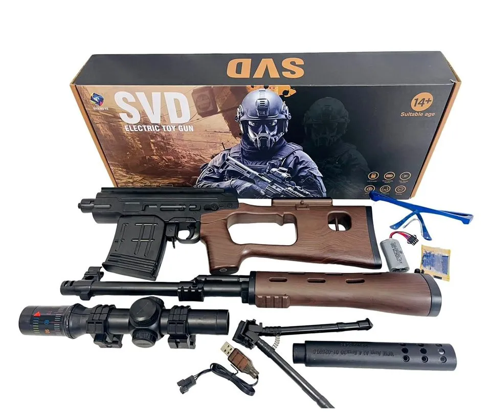 SVD Electric Toy Gun Gel Blaster Gun 500 Free Gel bullets included (7-8mm) Scope, Safety Glasses & Gun stand included Rechargeable battery Real Size G... Read More