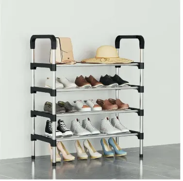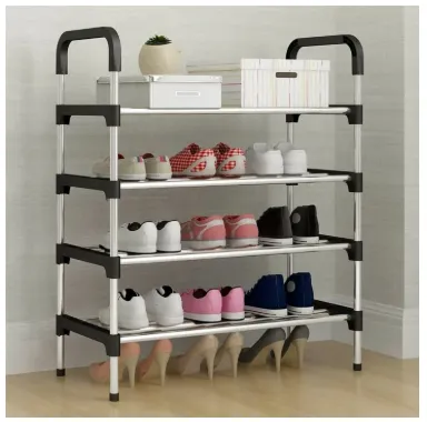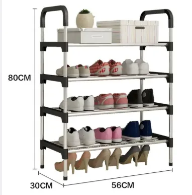Shoe Rack 4-Tiers Shoe Storage Organizer (Black) 56 * 30 * 80 CM - Easy to Assemble 4 Layer