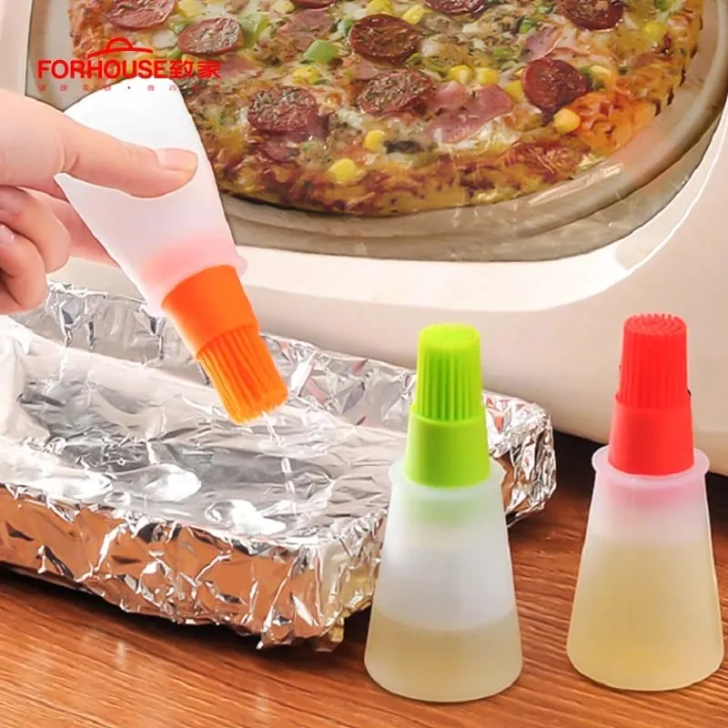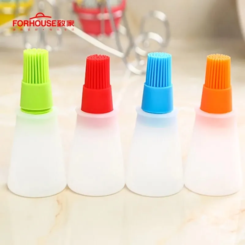 Silicone Cooking Oil Bottle & Basting Brush (Random Color) 120ml - For Pan, BBQ Grill Kitchen Baking Pastries Cakes Desserts