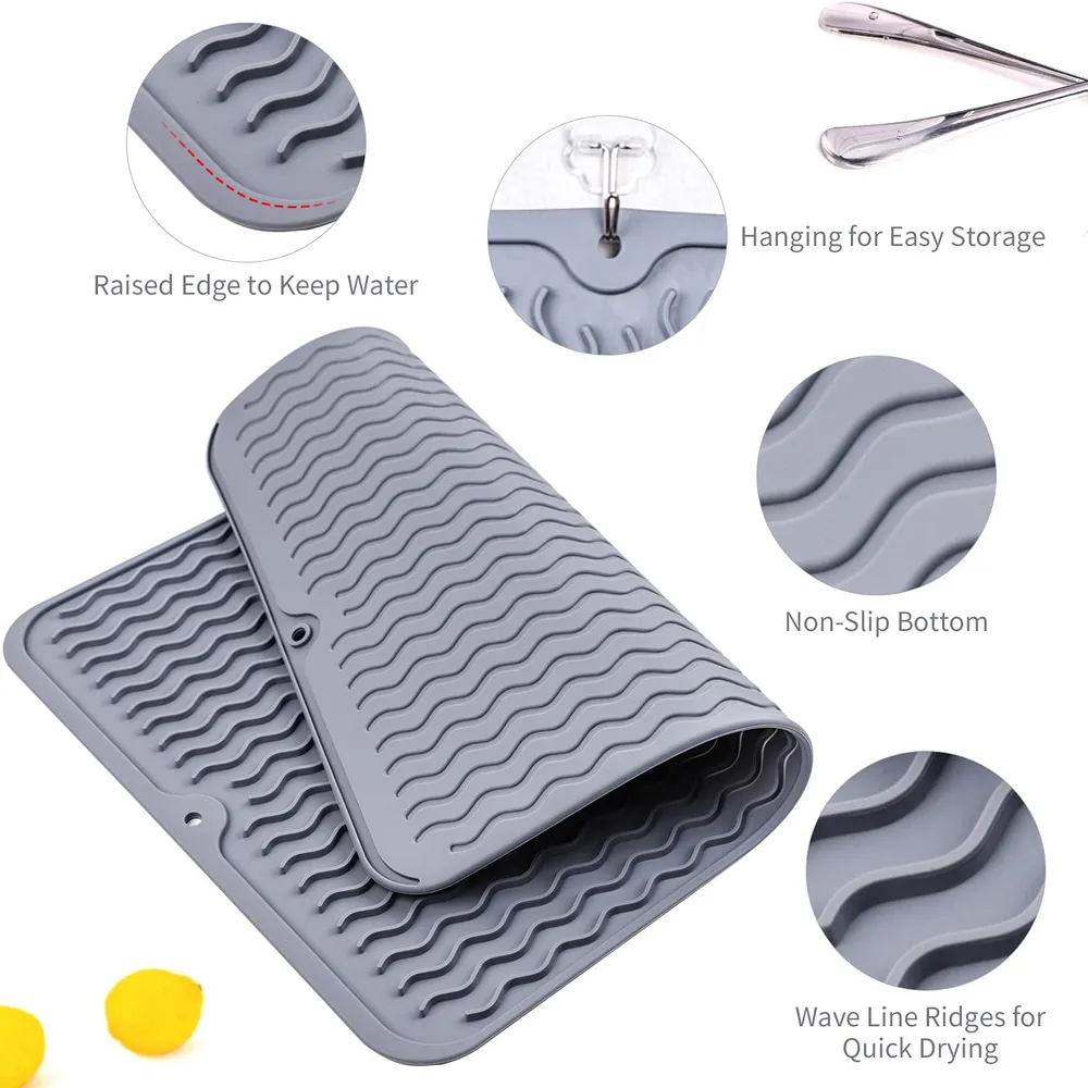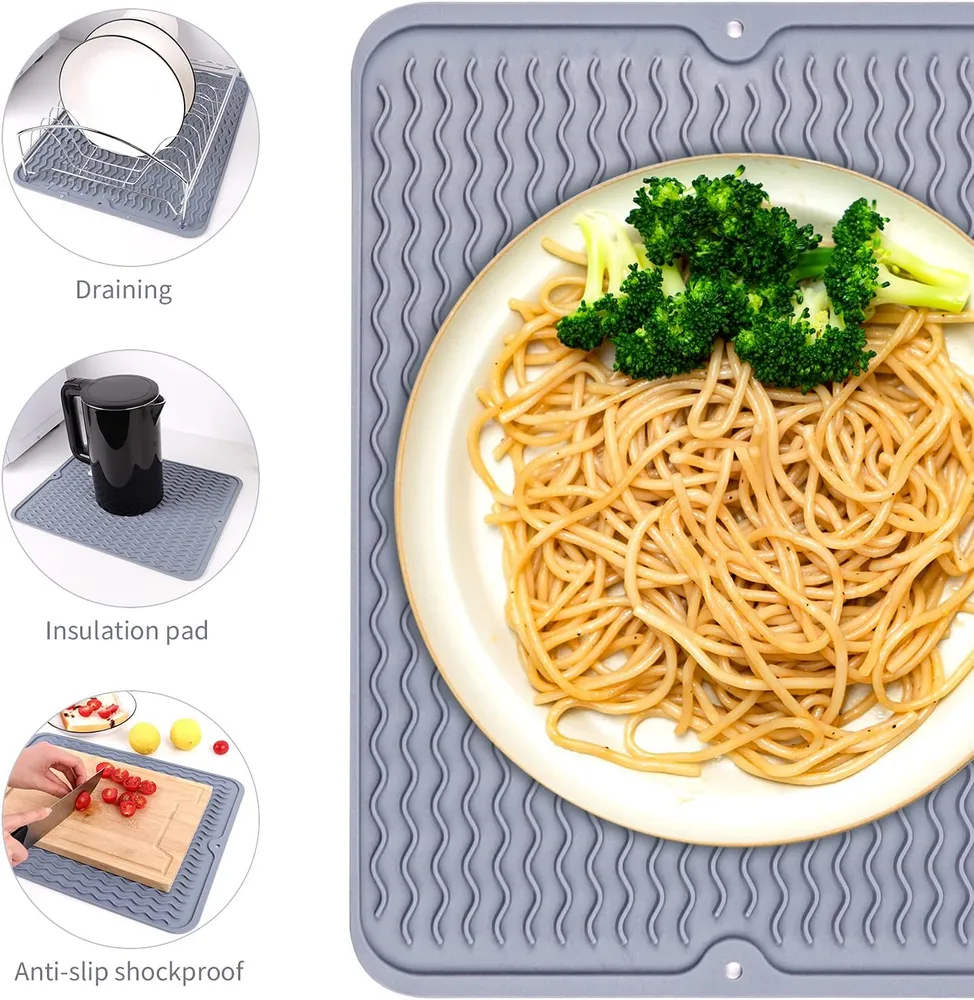 Silicone Kitchen Asphalt Mat / Hot Mat / Place Mat - Dish Drying Mats, Drying Mat for Kitchen Counter, 16x12 inches Dish Mat, Easy Clean Heat Resistan