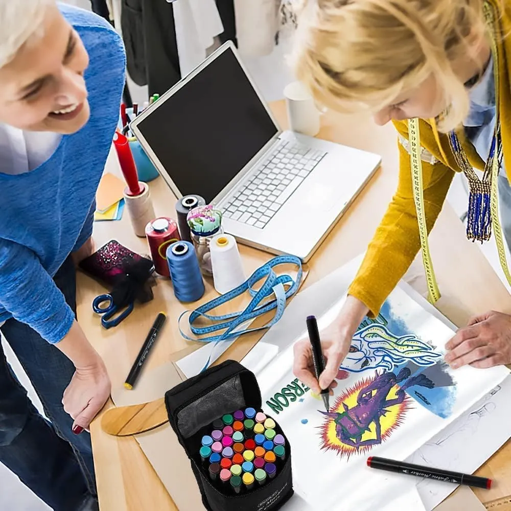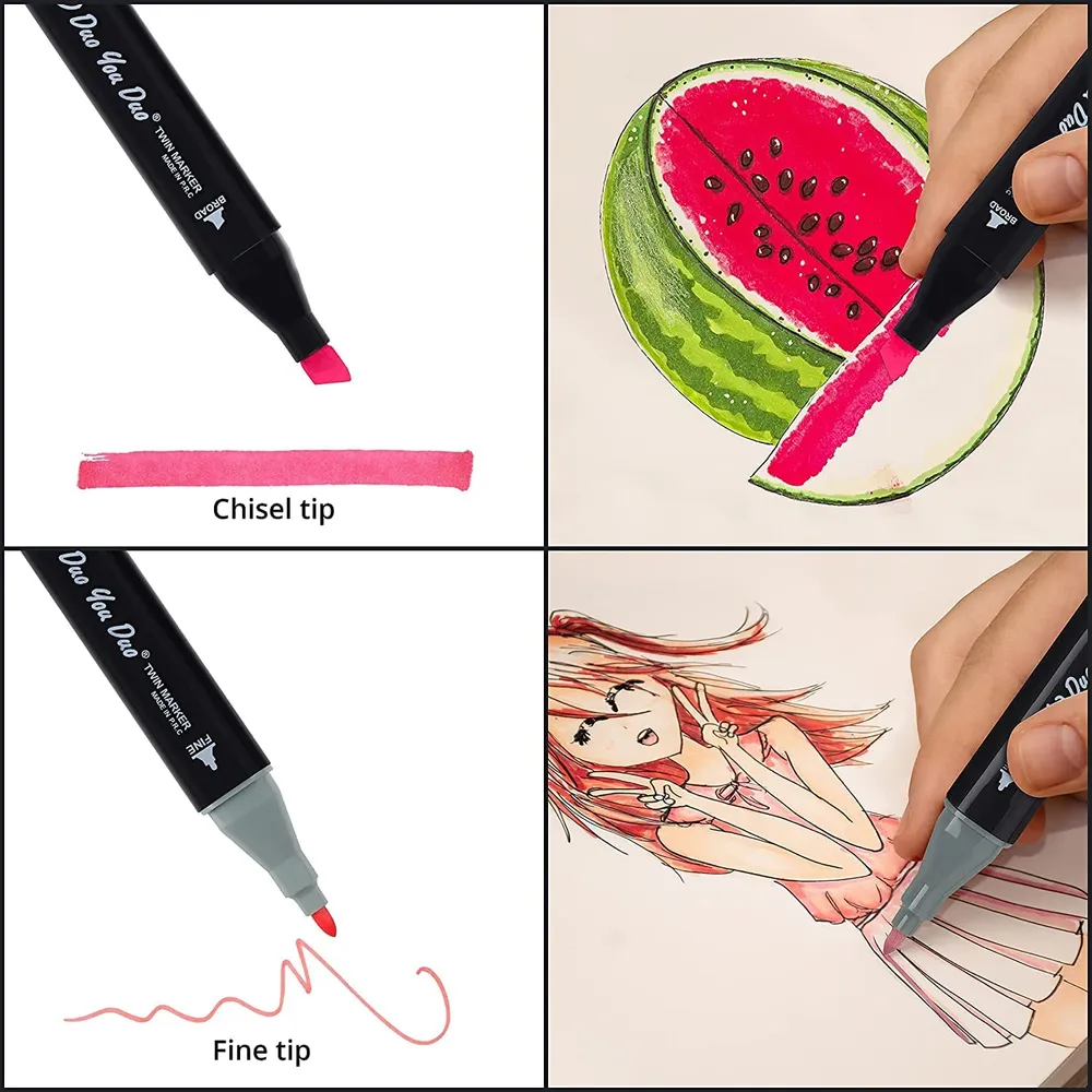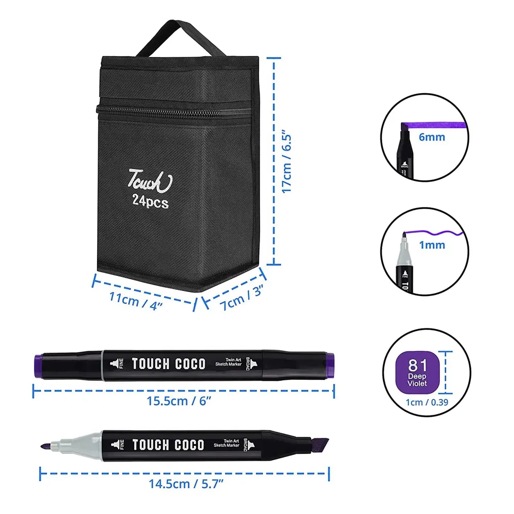 Touch Cool 24/36/48 Colors Alcohol Markers Professional Art Set with Carrying Case - Double Ended Bendable Alcohol Based Ink Colors With Fine And Chis