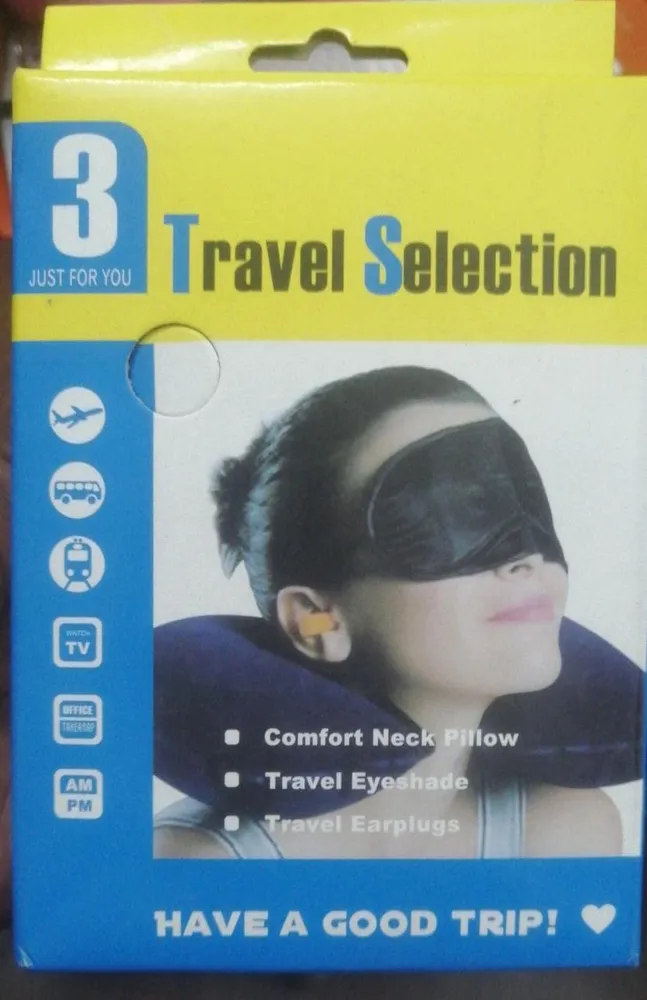 The pack contains 3 must have travelers' items Inflatable travel pillow (with neck cushion), eye mask and ear plugs The complete combo to ensure good sleep and comfort while traveling... Read More