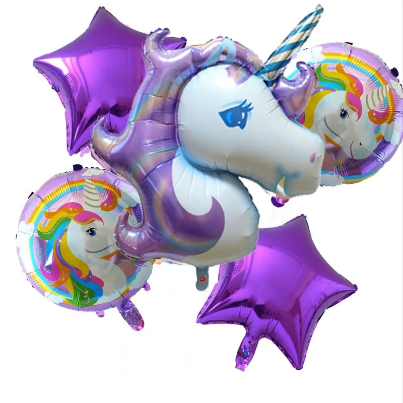 Unicorn Foil Balloons - Set of 5 Pieces Colorful Greeting Balloons for Special Occasions Birthday Parties