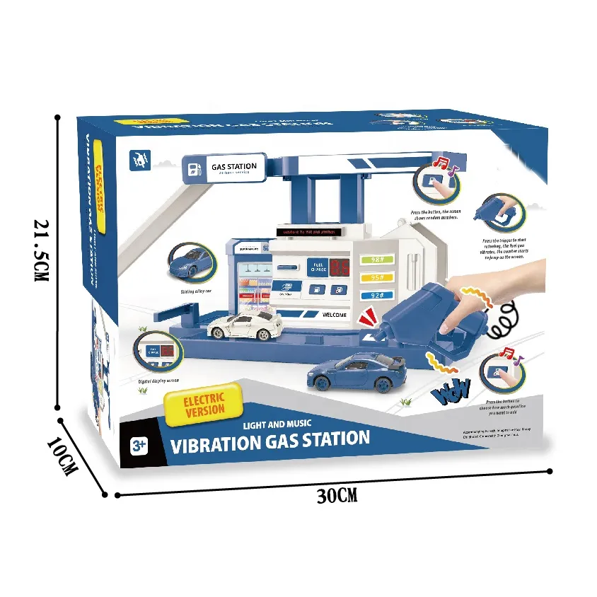 Vibration Gas Station Kids pretend play toy Lights & Music Digital Display Screen Sliding Alloy Car Press the button, the screen shows random numbers Press the trigger to start refu... Read More