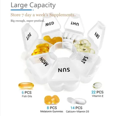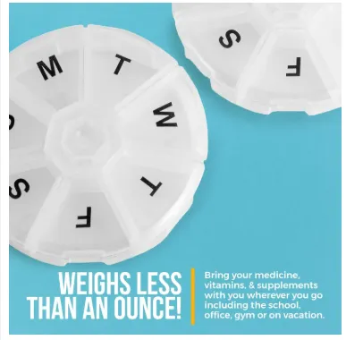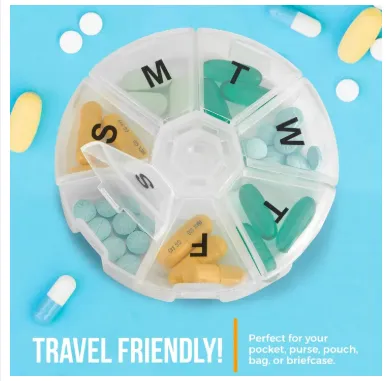 Weekly Pill Organizer - 7 Day Pills Container, Round Medicine Organizer Box, Daily Week Pill Reminder Case Travel Friendly, BPA-Free Vitamin, Suppleme